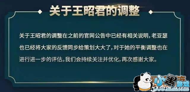 还有一个就是王昭君了,王昭君因为大招技能已经做了改版,而平衡调整也在评估中,后续王昭君还是会继续优化的。