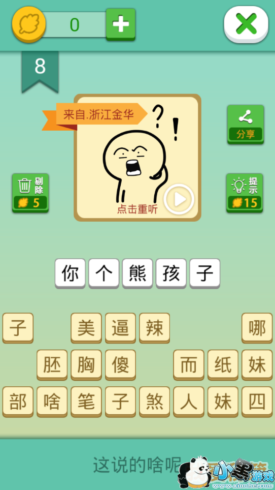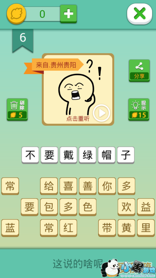 在这说的啥呢第6-10关中让小编唯一一个猜不出来的就是,小黑游戏关来自内蒙古的问候,不知道小伙伴们有没有猜出来呢?下面我爱秘籍就为大家带来这说的啥呢第6-10关攻略大全。