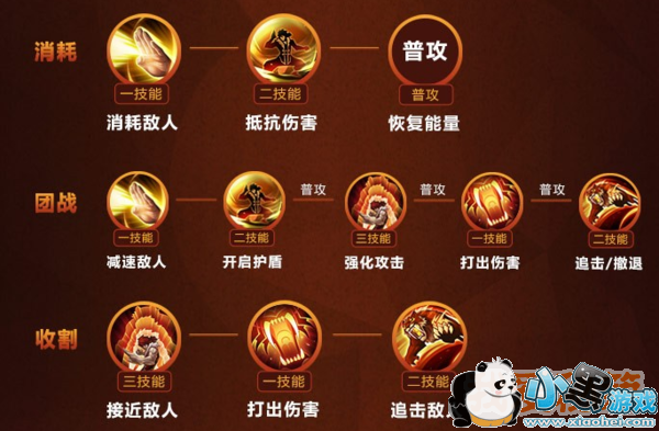 主一技能虎啸式:以撕咬的方式攻击敌人造成大量物理伤害,击杀后回复能量。