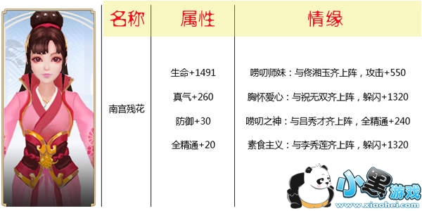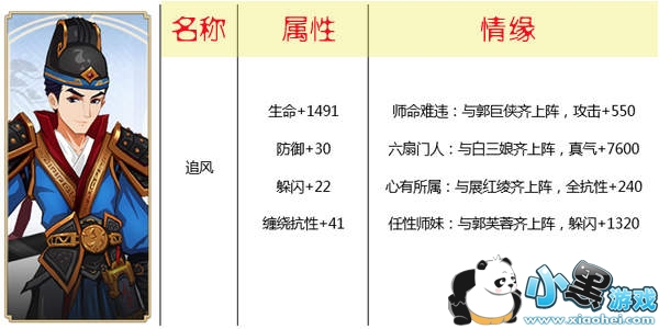当多个有情缘的侠影同时出现在一个阵法中,可激活情缘属性。情缘属性将对角色进行额外加成。
