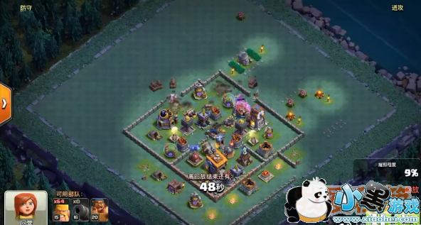 部落冲突夜世界8本鱼形阵3星打法