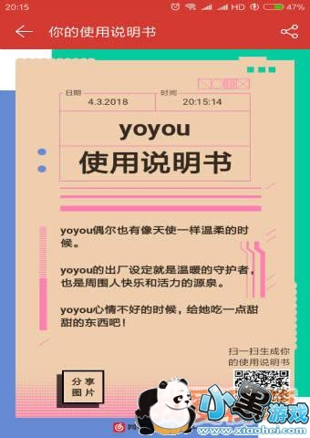 5、当你完成所有的6题背景音乐选择后,再选择性别就可以生成你独特的个人使用说明书,然后可以分享到朋友圈或者微博里给大家了