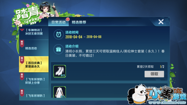 这个活动是小编最喜欢的活动了,玩家可以获得三辆车,这个活动也是对于平民玩家。玩家在4月5日登录就可以领取3天的剃刀,4月6日登录就能领取3天的NOBLE,4月7日登录就能领取大Q吧。