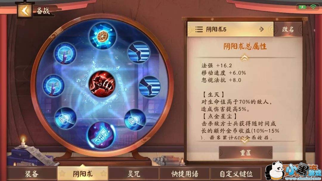 同时,如果想要最大化的增加团战输出能力话,可以将秘术·豹袭替换成言灵·星,毕竟10%的伤害提升是实实在在的,秘术·豹袭由于技能机制的问题在团战当中很难被触发,从而导致团战作用较低。