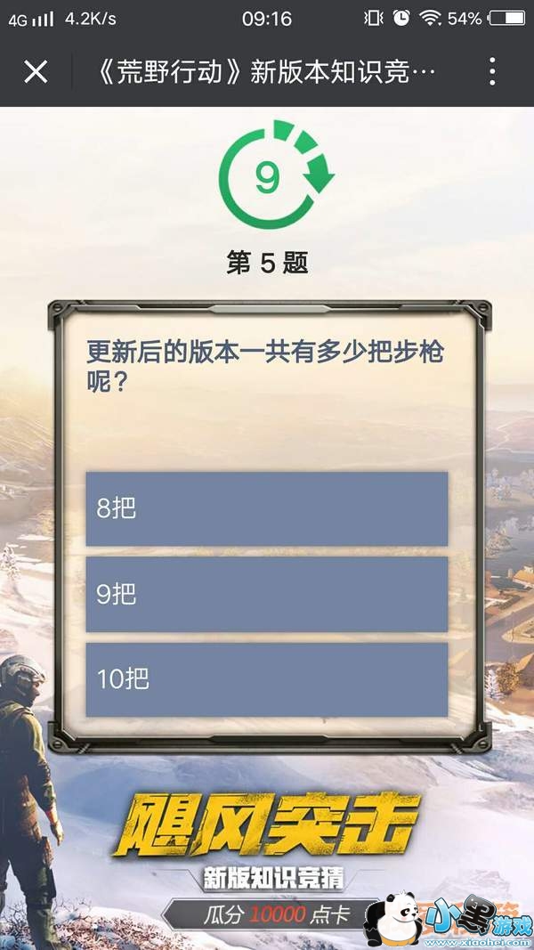 荒野行动的新地图新版本叫做“飓风突击”,而且为新地图上线做了一个答题活动,只要你们能正确的回答每一轮的问题就能获得相应的奖励。那么更新后的版本一共有多少把步枪?你们回答正确了吗?