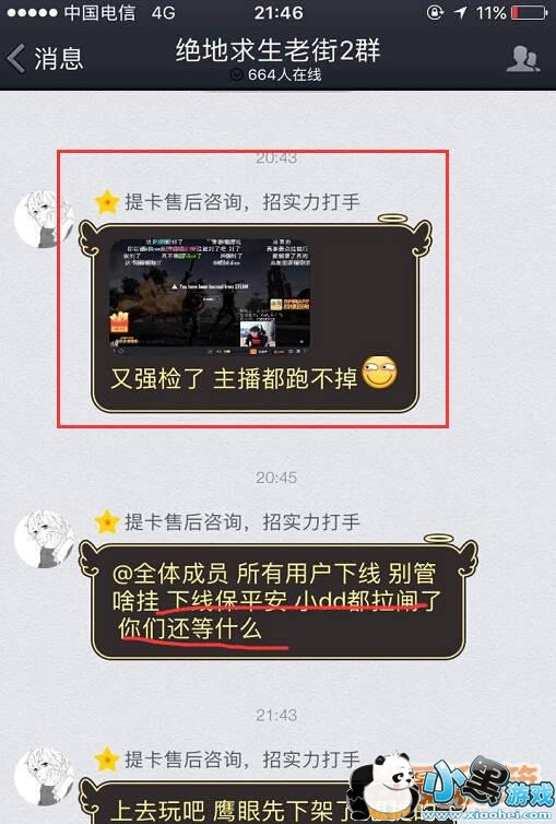 无独有偶,据网友爆料,有外挂群也在XDD被封之后迅速发布公告,称Steam正在进行强力检测,大家注意使用。当然,这条聊天记录代表不了什么,但小游君想说的是,这斗鱼一哥这个位置还真是很危险啊。