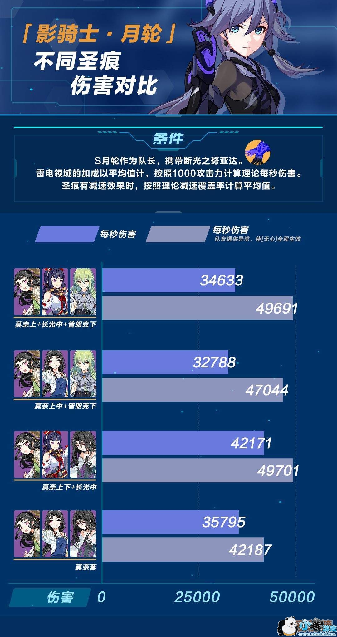 打BOSS常用莫奈上中普朗克下,由于雷伤体系往往会带鬼铠或鬼角或一起带,长光中的30%易伤效果会逊色于莫奈中加上莫奈两件套带来的60%雷电元素伤害,此时月轮的雷电元素伤害与雷易伤都较高。