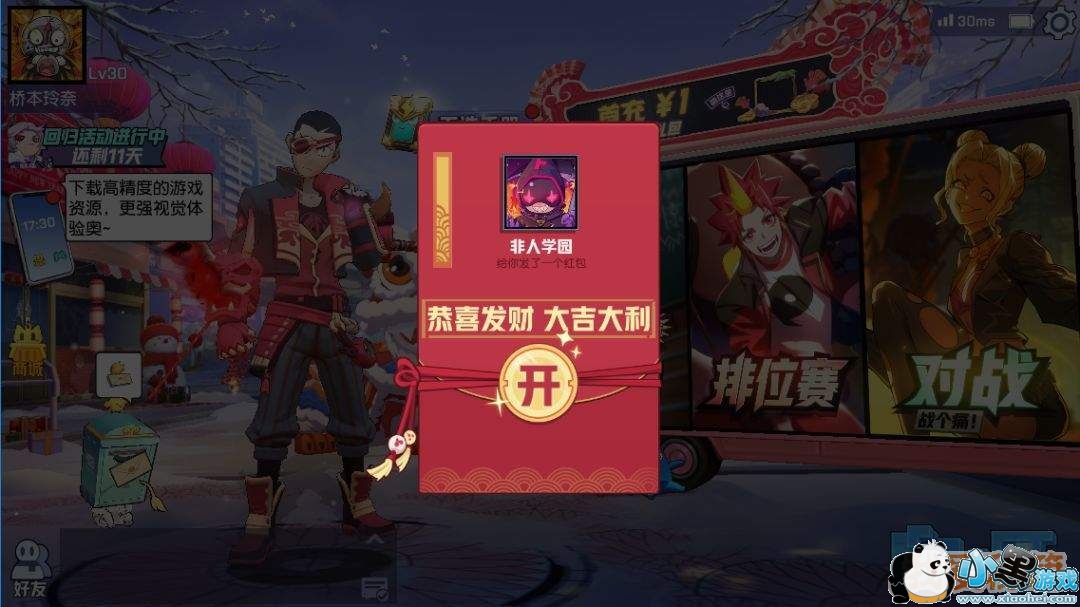 1. 玩家第一次点击可以领取到非人学园给玩家的红包:18金砖