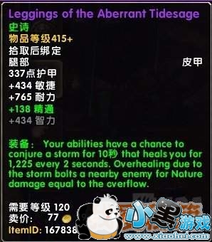 装备:你的技能有几率召唤一个风暴持续10秒,每2秒治疗你1225。风暴造成的过量治疗会变成自然伤害弹到附近的敌人。