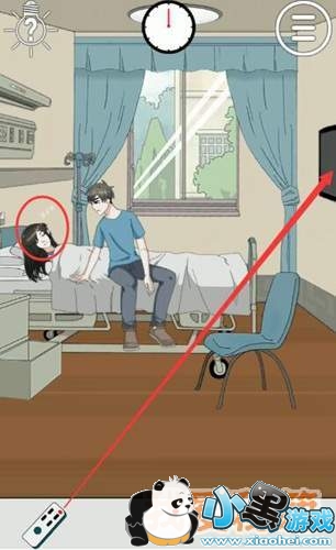 然后上方时钟转一圈后,女生就会睡着,这时候我们按住遥控器拖到电视上,打开电视。