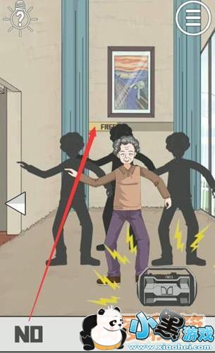 来到右侧区域,按住道具栏中的NO,拖到后面墙壁上。