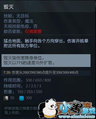 潮汐猎人因为他的大招“毁灭”脱颖而出,不光拥有很大范围的眩晕控制效果,也有不俗的伤害,是一个非常好的前排以及控制英雄。