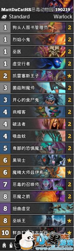 MattDaCatHS恶毒动物园带上了恶魔箭、疯帽客等不常见的单卡,和动物园的铺场能力相结合