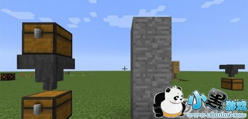 对着漏斗和箱子右键的情况下,是不能摆放物品的,所以我们会把它代开,我们先用石头来把自己想要的组合模型摆放出来。