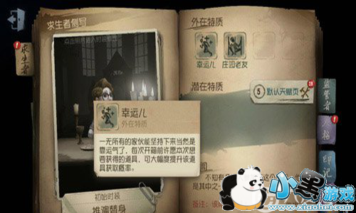 当遇见监管者或者是小丑、杰克,这种性格上很霸道的NPC角色的时候,玩家选着帮幸运儿这样的加点搭配,可以加强玩家的自保能力。