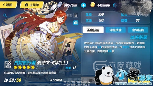 生命值:350 攻击力:14 防御力:33 能量值:14