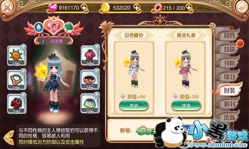 时装:同样在角色界面点击【时装】按钮,里面为不同的角色设计了花样繁多的时装,时装需要消耗钻石购买,不同时装的花费的钻石数量不定,穿上不同时装的角色提升的颜值也不一样。