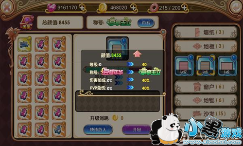 家私:对角色的房子和家具进行升级同样也能增加颜值,当然升级需要材料,参加游戏中的主线活动就能获得或者是好友赠送,家私的等级越高颜值也就越高。