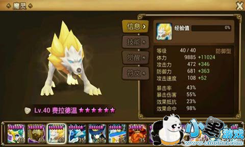 觉醒后——四星,基础体力4905、基础攻击368、基础防御285、攻击速度108。