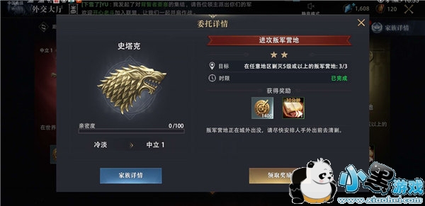 权力的游戏手游中通过外交大厅我们可以接取各大家族的委托任务,完成委托任务之后在提升声望的同时还可以获得免费的加速道具,虽然说有时候任务很难,但是一般完成任务后获得的都是长时间的加速道具。
