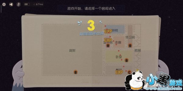 开局无脑选择黑猫,这个角色比较强,另外两个不太适合新手。进入游戏后,首先会看到一张地图,这地图作用很大,可以看到机械耗子进入了哪些房间。我们等机械耗子进入空间比较小的房间再进去。你会看到你和机械耗子距离很近。
