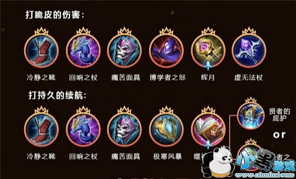 第一套(打脆皮的伤害装):冷静之靴,回响之杖,痛苦面具,博学者之怒,辉月,虚无法杖