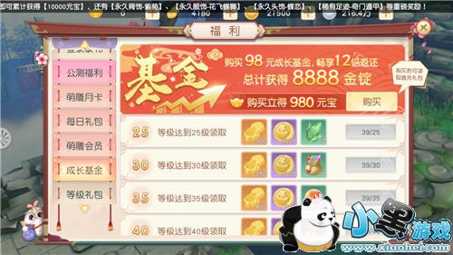 神雕侠侣2手游中成长基金属于福利中比较划算的一种充值途径,对于微氪玩家来说成长基金还是十分值得购买的,下面就和小黑游戏小黑游戏小编来一起了解下成长基金的详细奖励。