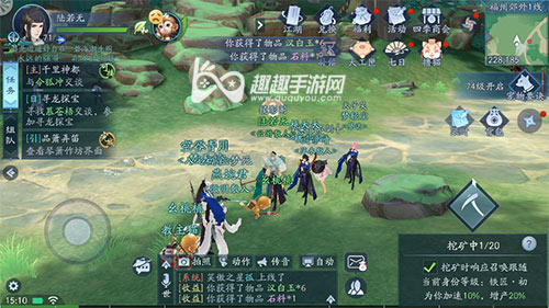 玩家可以来到如图所示,也就是福州郊外这里,然后只要你到了这个地方,就会出现一个石稿按钮,点击一下,就可以进行采集汉白玉了。