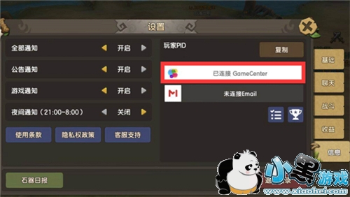 3、打开游戏点击Game Center图标进行连接,如果显示已经连接即为绑定成功。
