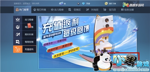 2、然后我们可以看到最底下的充值返利,点击跳转。
