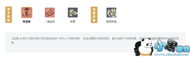 技能分析:将升龙拳的击杀追击概率提升到了恐怖的50%,进一步加强了人龙的收割能力。