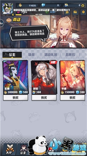 1、商店:商店中目前一共有三个公主可供玩家们购买(其中一个是蛇姬)。