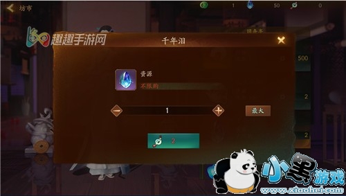 此外,我们还可以在坊市同舟亭中用因缘石来兑换千年泪,两颗因缘石可兑换一枚千年泪,玩家们如果有多余的因缘石储备也可以到这里来换取哦。