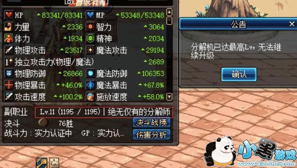 而自己平时没事的话就站街摆一下分解机,还能挣点金币。但是这12级的分解机一出现把大家的生意都抢走了,就算他不是真的,那玩家们也会抱着好奇的心态去看一看,当然了老玩家们一眼就能知道这肯定是改过游戏数据的,大概也就是看起来是12级,但是打开后显示还是11级的,不过如果真的把游戏机制的上限都做了改变的话,那肯定就要面临着官方的制裁和封号了。