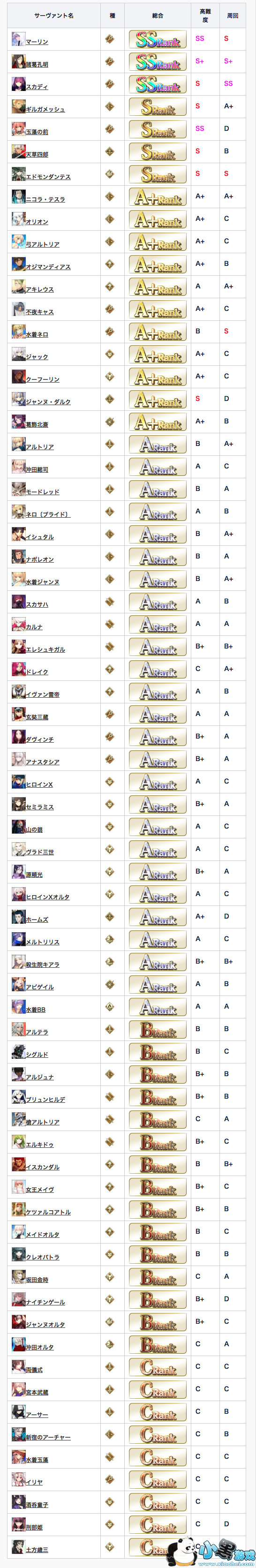 a. 这次的评分是基于五星从者内部的比较得出的,基本可以认为五星就是比四星强(五星评分C相当于四星评分A);