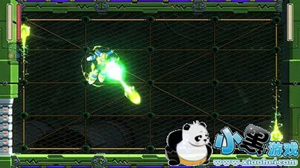 HP一半后发动速度齿轮,这时电流会消失,此时以洛克人为中心,使用Z字形移动冲到天花板(越往上,左右移动幅度越小),然后往洛克人所在落下,会连用5次。对上这招时不要用跳跃,免得撞到他,而且自己也不要乱走,等他冲到天花板后要落下来时再以滑行的方式回避。他会从哪边落下来会先有个残影提示在地上,很方便判别,落地时是最好的反击时机。那如果觉得速度太快,可干脆使用速度齿轮来看清落下位置。