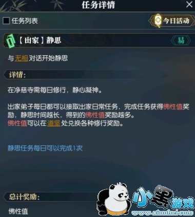 逆水寒佛性值获取途径: 出家之后,在寺院里完成静思等各种任务,奖励佛性值。只有佛性值奖励。