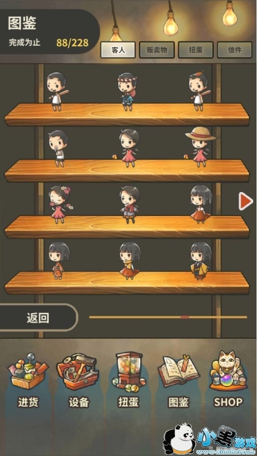 图鉴中分为【客人】、【贩卖物】、【扭蛋】、【信件】种,一点点慢慢集齐吧!