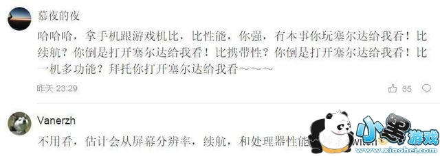 而大部分switch玩家更是公然嘲讽道:“华为真硬气!索尼都不这样敢比”“意思是可以在华为手机上玩塞尔达了吗”“哈哈哈,拿手机跟游戏机比,比性能,你强,有本事你玩塞尔达给我看!比续航?你倒是打开塞尔达给我看!比携带性?你倒是打开塞尔达给我看!比一机多功能?拜托你打开塞尔达给我看~~~”
