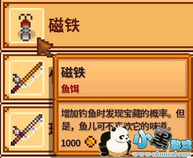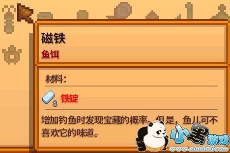 除此之外,我们随着钓鱼等级的提升,我们还可以自己去制作鱼饵。当然在这里我比较推荐磁铁鱼饵自己收集铁粒自己烧制后制作,因为威利大叔卖得实在是太贵了,而且磁铁鱼饵还和普通鱼饵一样,是一次性消耗品!一次性!