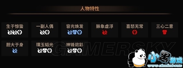 每个人都有个人物特性,有白色,红色蓝色,武器,防御,机略3种,没错了,你想要的机略就在这里面找。