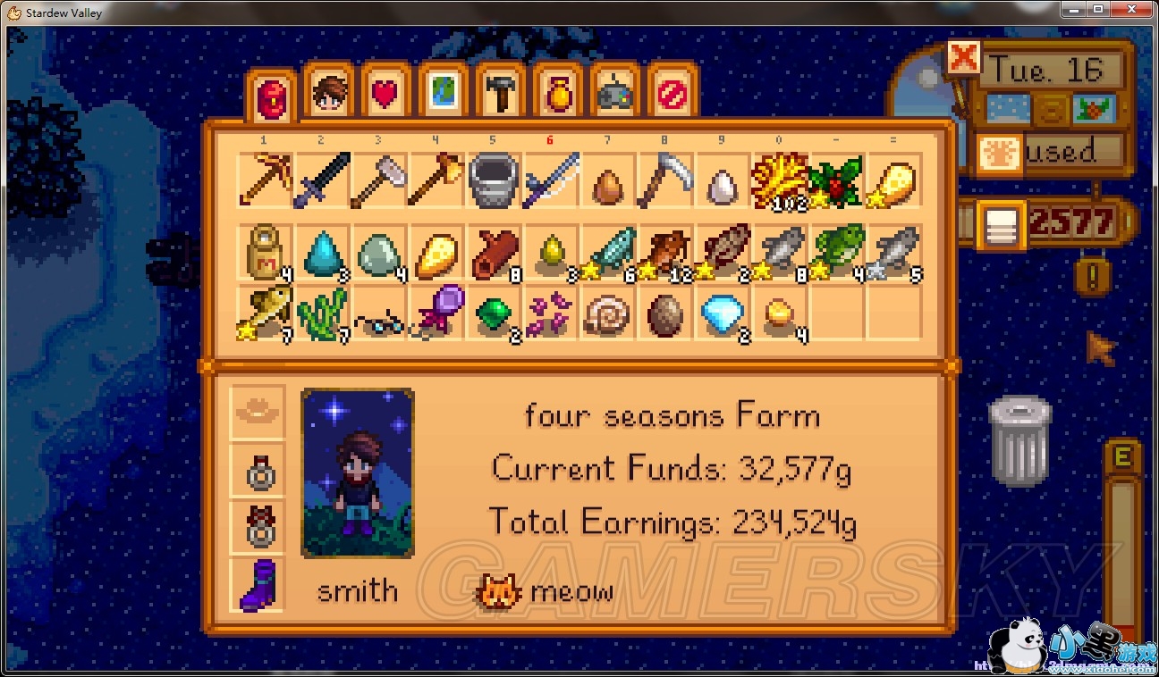 然后这地难度比较高的sturgeon大概能卖400左右一条,lingcod200多一条,剩下的低难度的bullhead、largemouth bass、perch也都能卖100多一条,然后最便宜的chub可以卖也可以用来做高级肥料,再加上这地的宝箱盛产各类宝石,也能增加不少额外收入。我最高记录曾经一天钓了53条,其中9条sturgeon 3个钻石2个红宝石赚了1W1+。