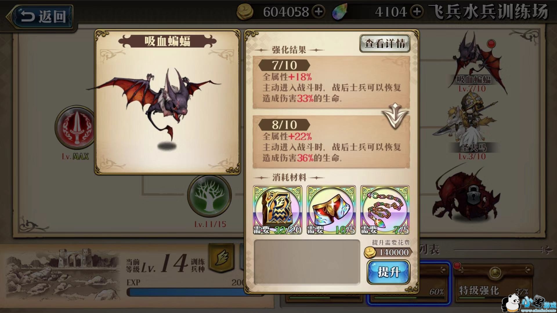 士兵:上边有说红骑兵那种有阴影的铁骑居然做的这么弱真是没想到。所以带飞并。蝙蝠能保证续航非常适合推图。再加上骑士精神,简直就是疯跑的熊孩子,不到吃晚饭绝不回家……后期如果为了极限输出与存活可以考虑天使,不过推图的话蝙蝠泛用性更高。且和元帅通用~天使pvp表现的则更亮眼。但是唯一难受的是升级材料和红步兵冲突……所以限制了士兵等级