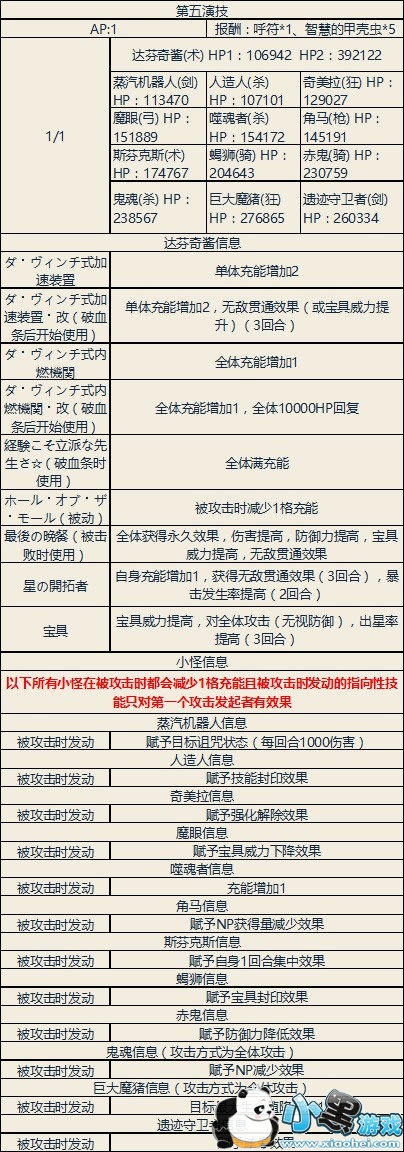 本次高难为车轮战,职阶和技能相当多,不过机制非常有意思。每一个敌人在第一次被攻击时会释放技能,且被攻击时会降低一格充能,达芬奇给予全队充能效果,但是建议不要优先击杀甚至是破血条,不然会对全体敌人上效果非常高的buff,建议优先小怪击杀。