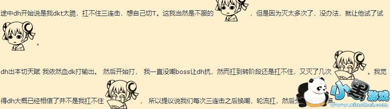 首先因为尾王开打后转阶段后就出现了倒T的问题,当然当时队伍五人组只是纠结于是否一个低装等的血DK硬度扛不住BOSS的输出,以及奶骑的加血回复能力是否存在不足,然后耿直的DH大兄弟就切了复仇天赋表示他去抗尾王,血DK切输出大家速度过了睡觉,结果令人尴尬的局面出现了:365的DHT也表示自己扛不住BOSS的三连击,虽然这个问题比较明显了,大概奶骑治疗手法依然有问题,但是毕竟尾王了于是他们提出了一个比较折中的方案——DK跟DH轮流抗,打个五人本还分个主副T这个操作也是很委屈了。