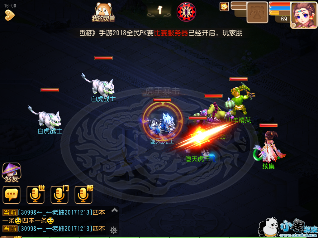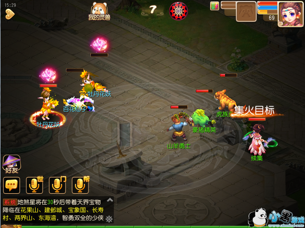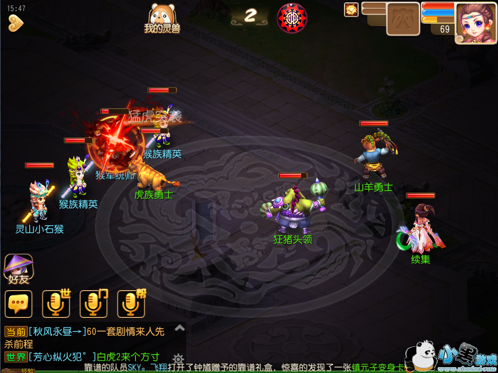 战斗中人物无法出手,但可指挥灵兽战斗,建议集火攻击,逐一击败。