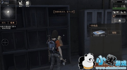 车祸之后我们来到一个陌生的地方,首先要拾取一些必备的物资。会看到很多发光的光圈,找到“生命检测设备”。点击拾取。