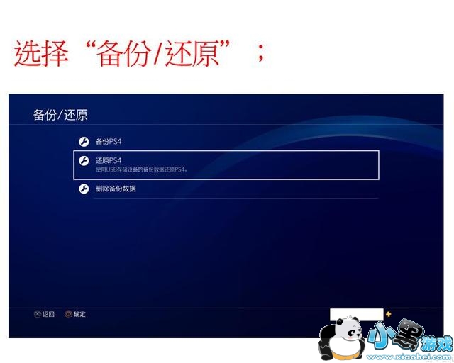 U盘插在国行PS4上,点击备份还原(将账号信息写到国行PS4上);