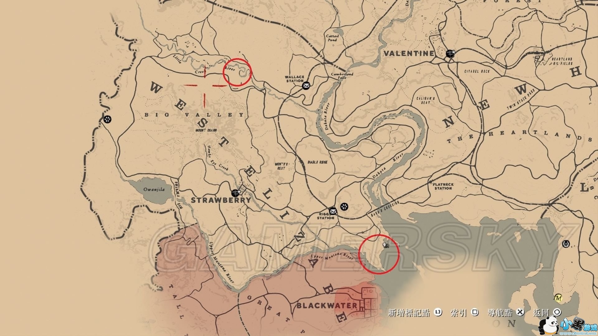美国花马、美国标准血种马和纳柯塔马地点都是黑水镇附近的区域。然后我在第三章找到最后差这三只马,所以只好找看看有没有其它地点了,请看下图: