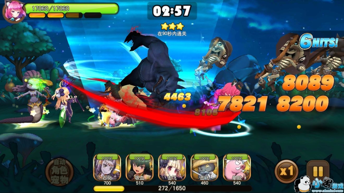 1.出场的同时,猫女侠使用大技能“S型切喉礼”击飞全部小怪。